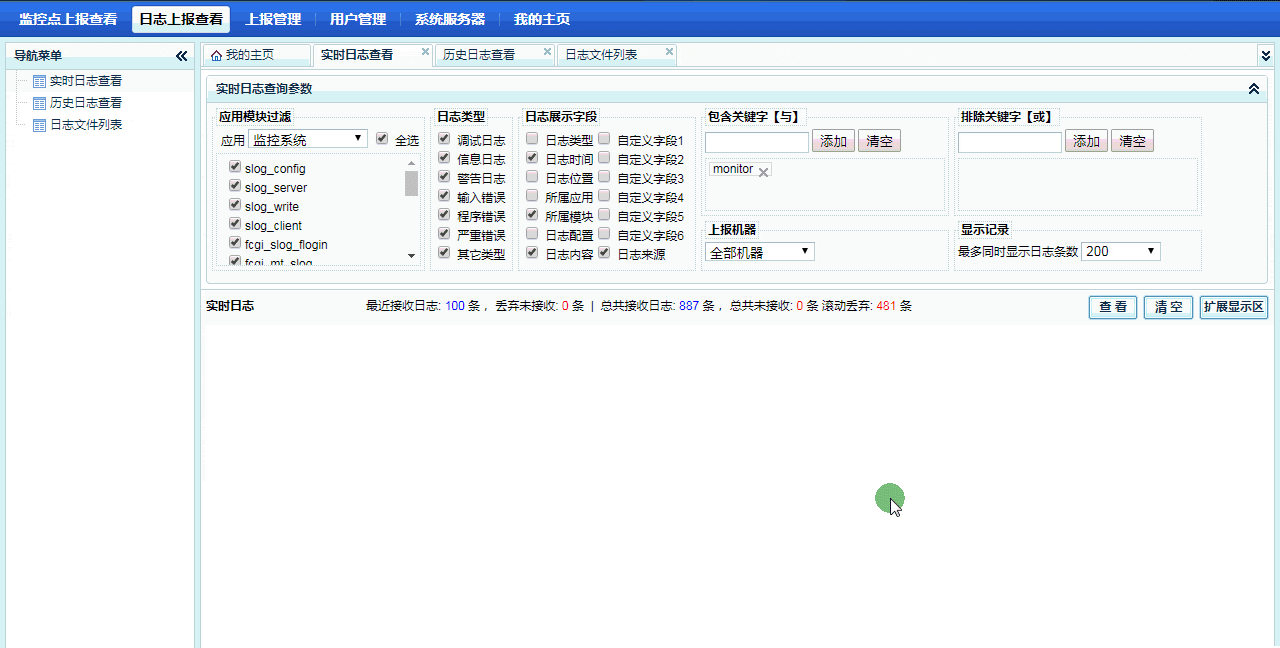 3.分布式日志系统: 支持大规模系统日志上报,日志上报支持频率限制、日志染色、自定义字段等高级功能,控制台日志查看支持按关键字、排除关键字、上报时间、上报机器等方式过滤日志,从茫茫日志中轻松找到您需要的日志。