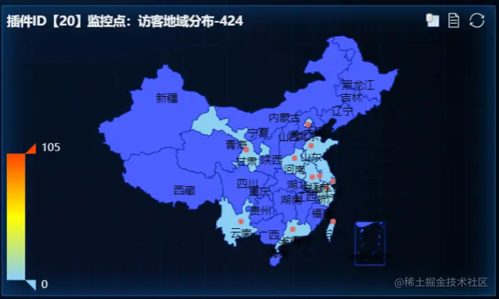 1.IP地址库: 支持通过IP地址上报时将IP地址转为物理地址,相同物理地址归并展示,一个监控API 即可轻松生成监控数据的物理地址分布图。