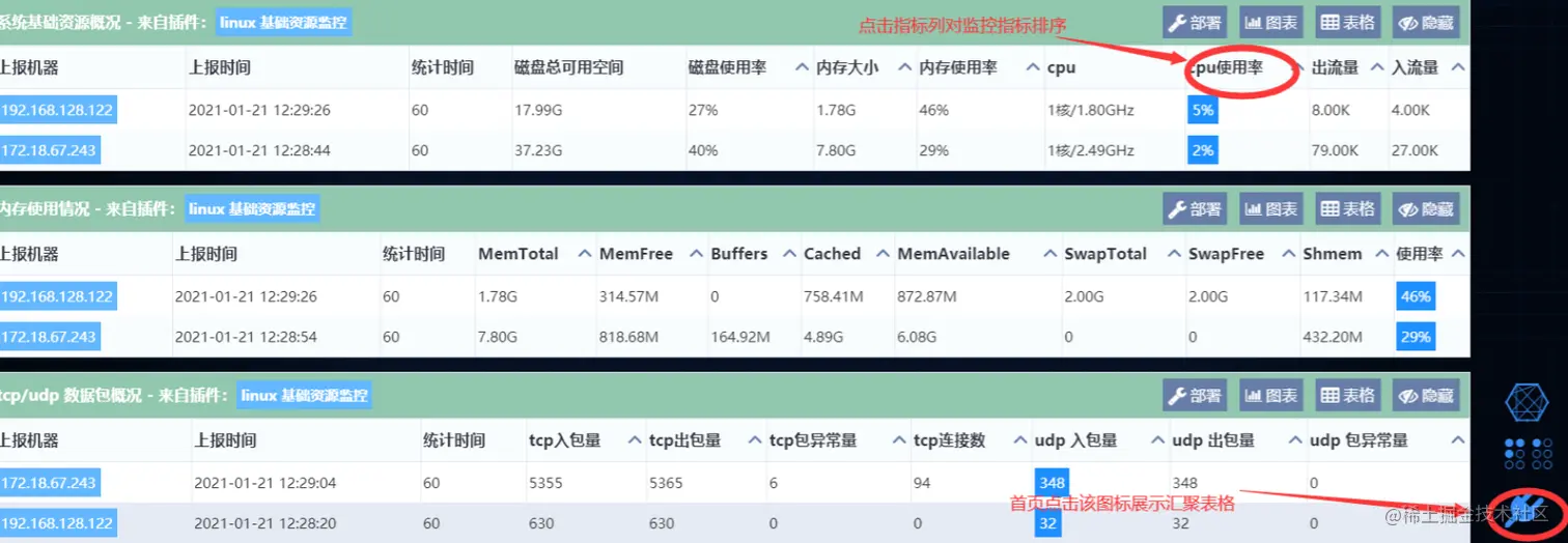 7.插件实时表格,主要用于实时展示监控指标在分布式机群不同机器间的对比排序。