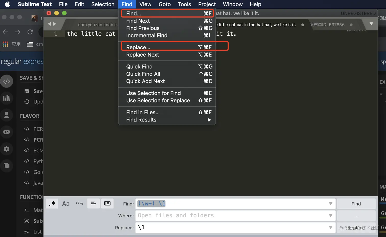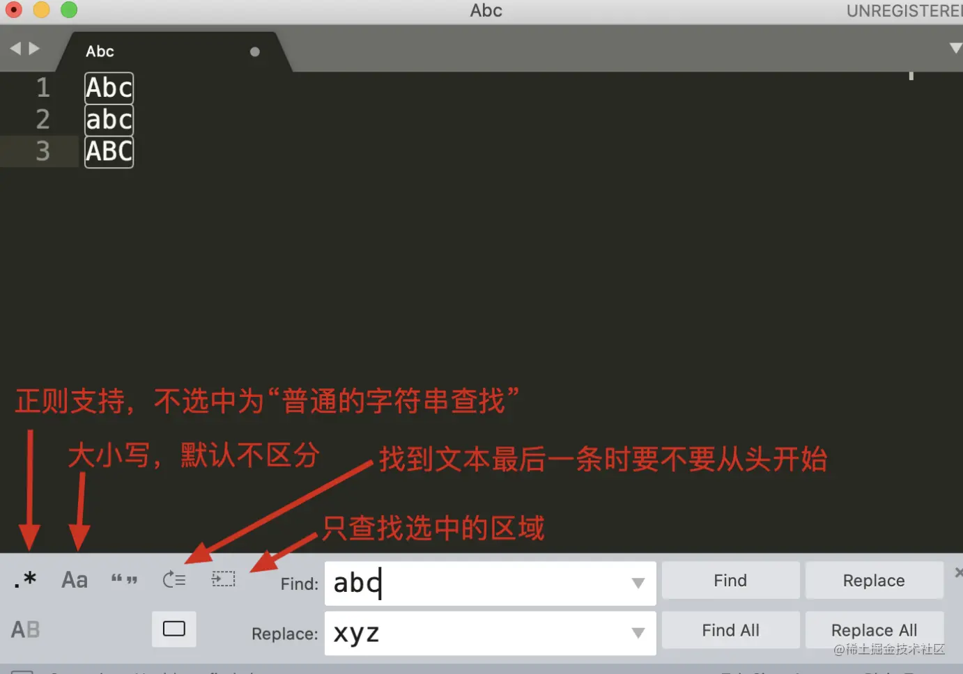 用 Sublime Text 3 来当例子,给你讲解一下正则查找和替换的使用方式。 Sublime Text 3 是一个跨平台编辑器,非常小巧、强悍,虽然是一个收费软件,但可以永久试用,你自行可以下载安装。 当熟练使用编辑器之后,你会发现在很多工作里都可以使用它,不需要编写代码就可以完成。
