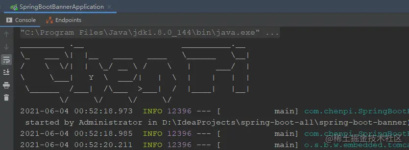 比如,自定义一个 banner 之后,项目启动控制台打印如下所示: