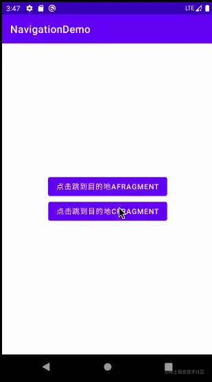 OriginFragment 中添加按钮点击事件,navigate 可以实现跳转的 DestiationFragment 的效果