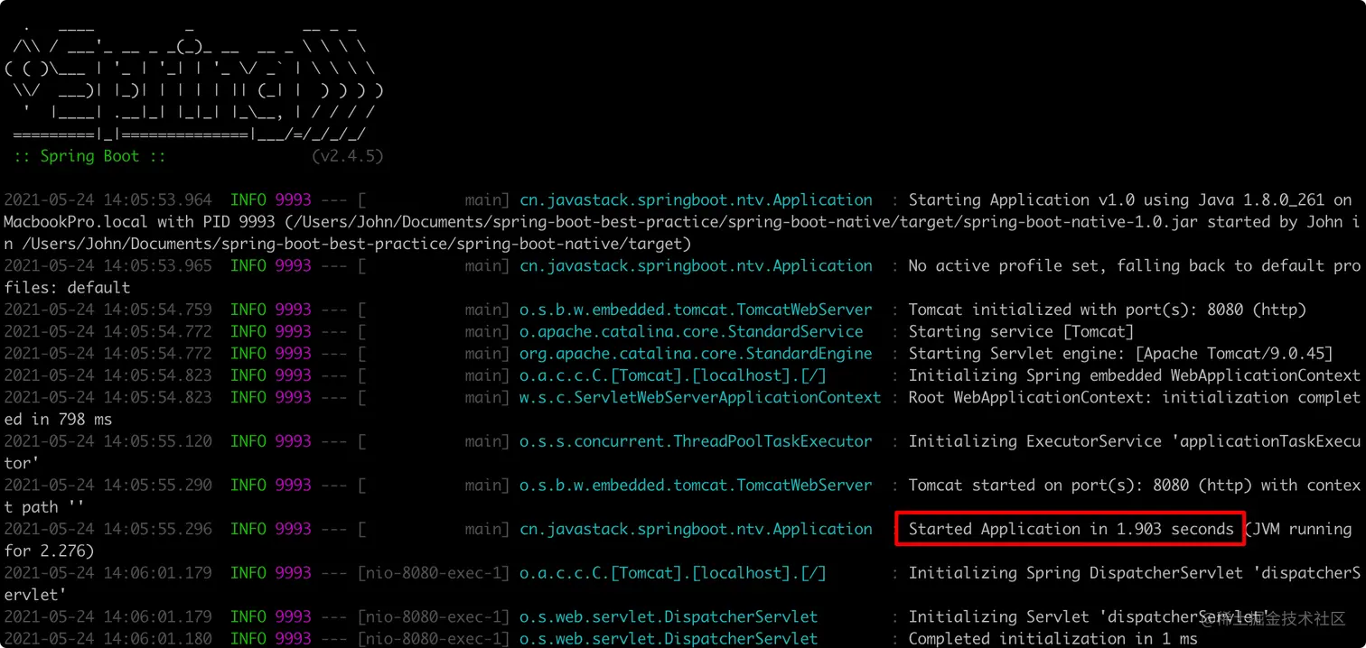 当然这只是我测试的参考时间,但可以说明的原生应用运行确实要比 JVM 快不少!