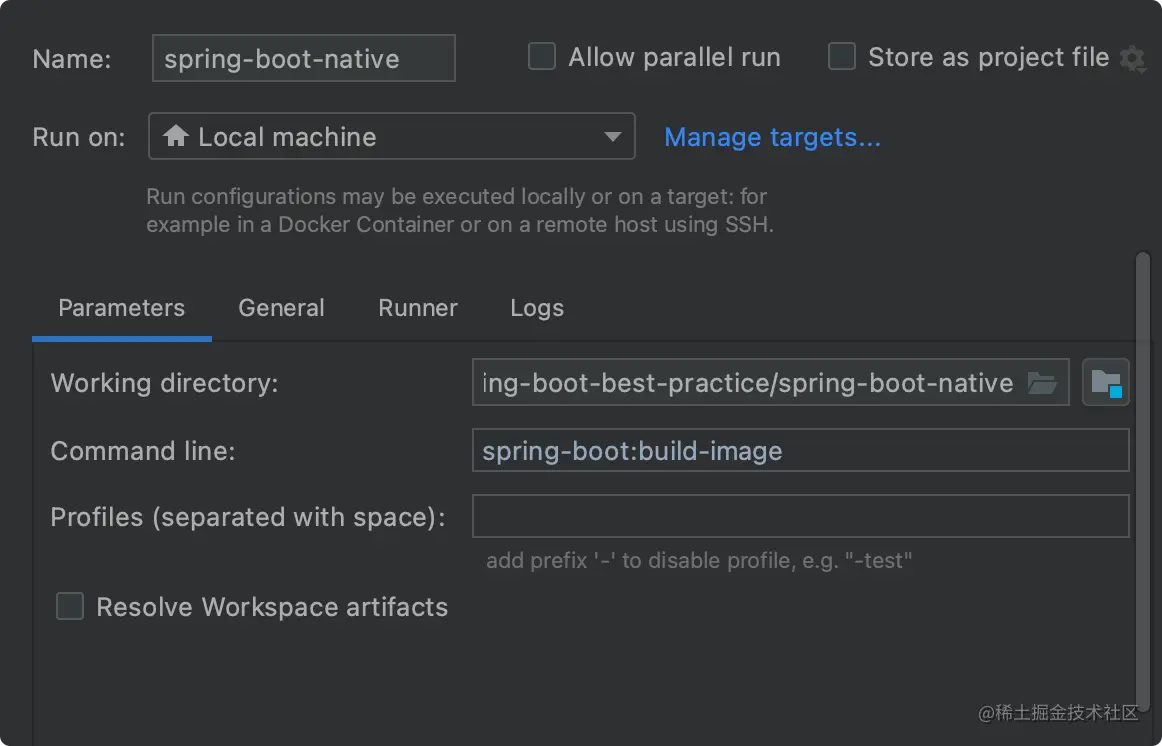 这个会创建一个 Linux 容器,使用 GraalVM 原生镜像编译器构建出原生应用程序,容器镜像默认只安装在本地。
