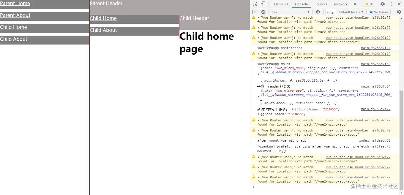 最后重启一下我们的微应用,再去我们的主应用点击一下Child Home菜单,如无意外你就会得到和我下面截图一样的界面