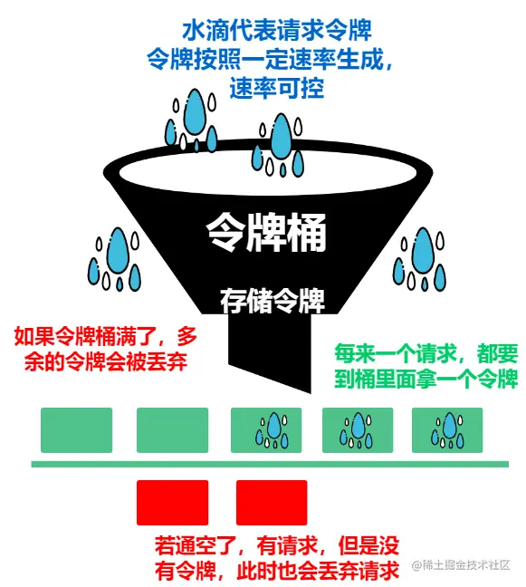 如果桶满了,还有请求过来的话,则会被直接丢弃,这种做法,还是丢弃了请求