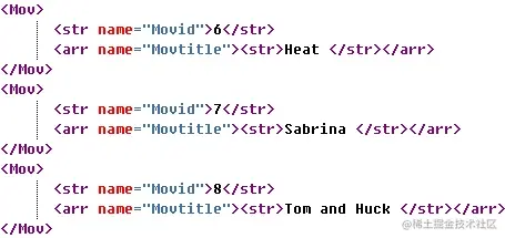 将电影数据文件转换成movies.xml文件,扩展标记语言XML是一种简单的数据存储语言,使用一系列简单的标记描述数据。如图4.2: