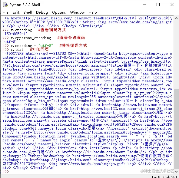>>> r.encoding = "utf-8">>> r.text>>>看见一些熟悉的汉字,是不是有一种豁然开朗的感觉