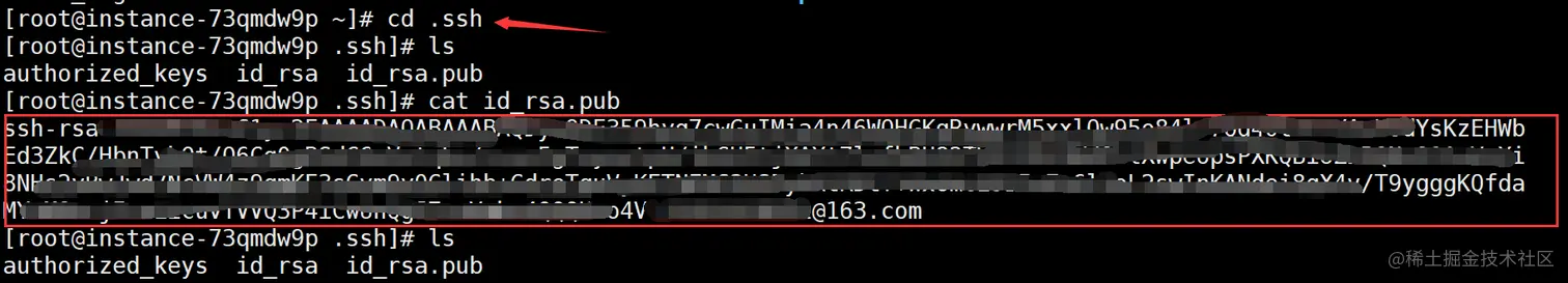 如果你没有改变秘钥的生成路径,那么通过家目录的.ssh下通过 cat 命令应该可以看到生成的秘钥,添加到 GitHub(这里以 Github 为例)的秘钥中!