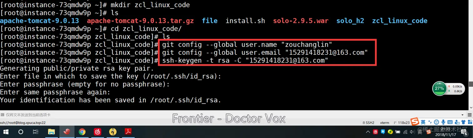 第一步:设置用户名和邮箱,并且生成秘钥