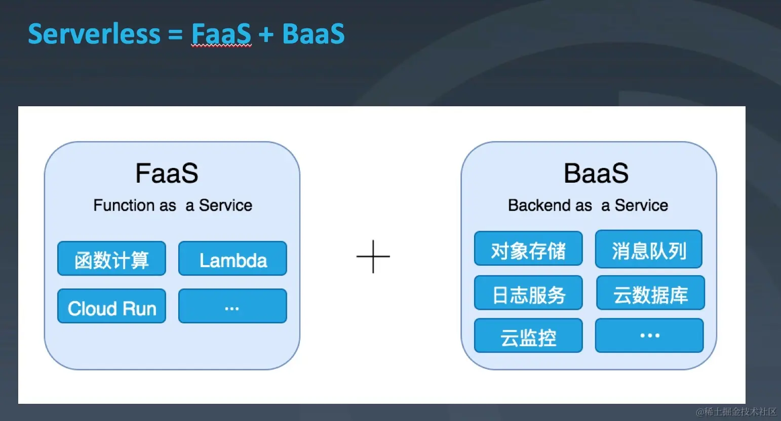 从功能支持的角度来说,Serverless = FaaS + BaaS(图片来源于网络):
