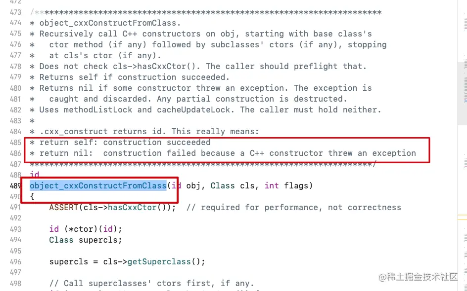 object_cxxConstructFromClass该函数的源码也非常容易理解,因为官方的注释给的很清楚。这里就截取关键部分,不再展示完整的源码。可以看到