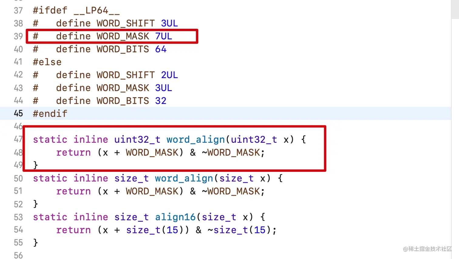 WORD_MASK为7,根据算法,word_align返回值,永远是8的倍数。