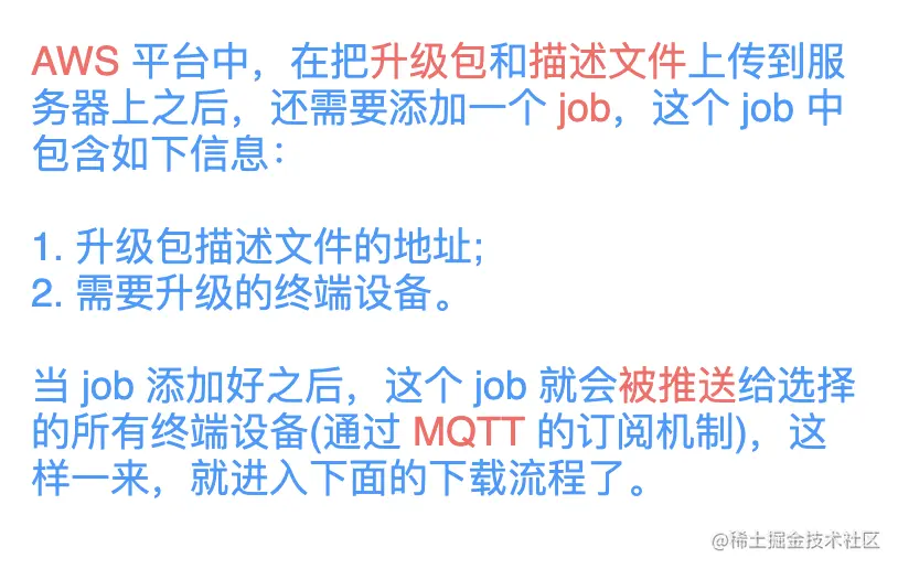 亚马逊的 AWS 平台,是通过在云平台中部署一个 job,来通知每一个需要升级的设备;