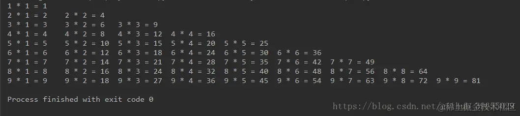 输出 9*9 乘法口诀表