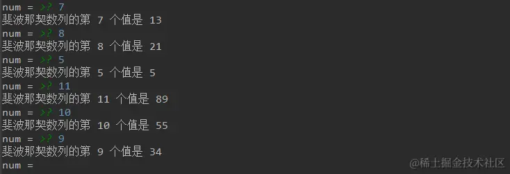 print('斐波那契数列的第 %d 个值是 %d' % (num, fib(num)))