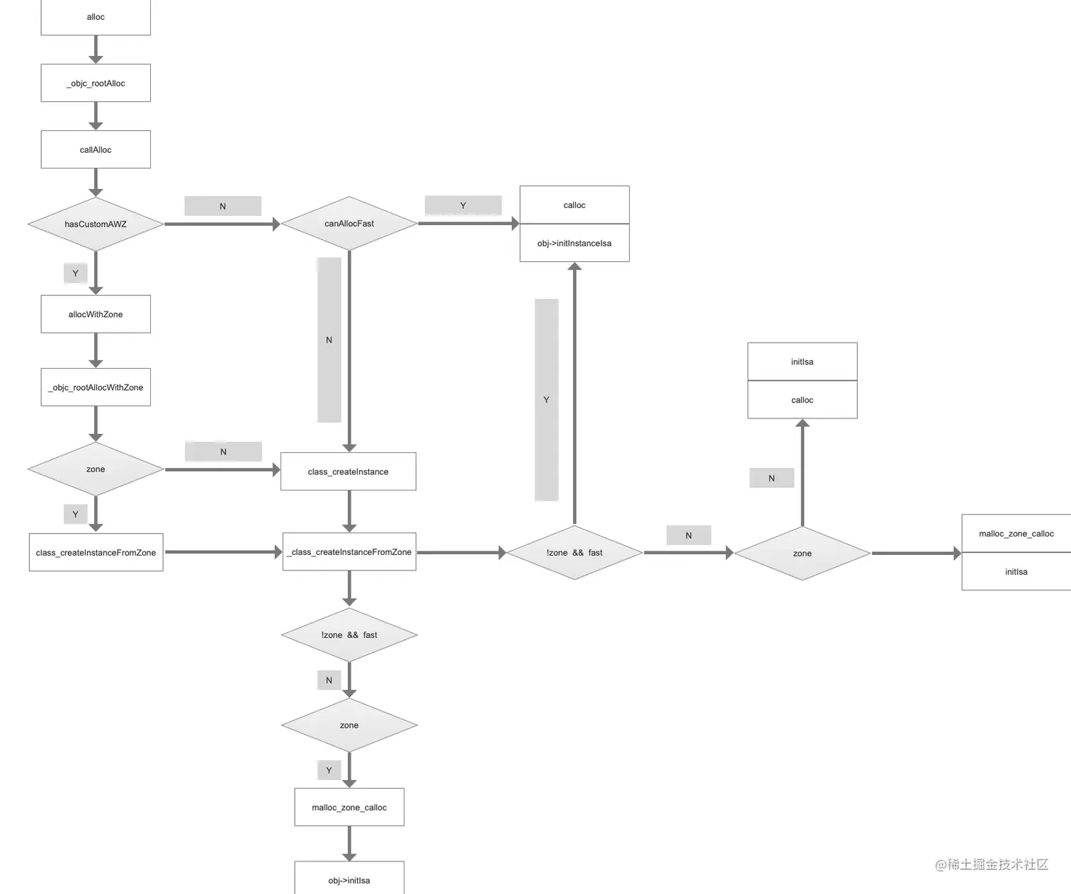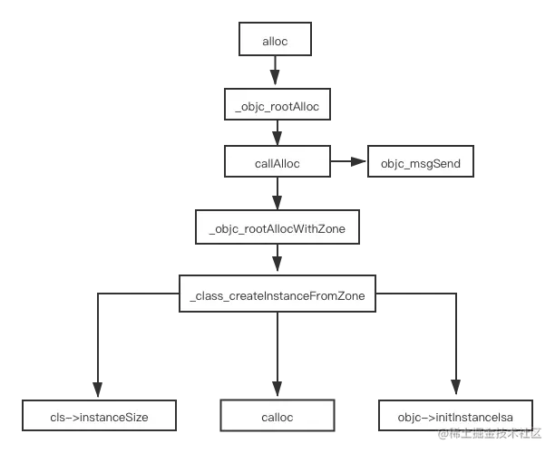 cls -> instanceSize计算内存申请的大小calloc向系统申请开辟内存,返回地址指针obj -> initInstanceIsa关联类(类和地址指针绑定)