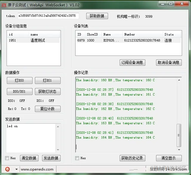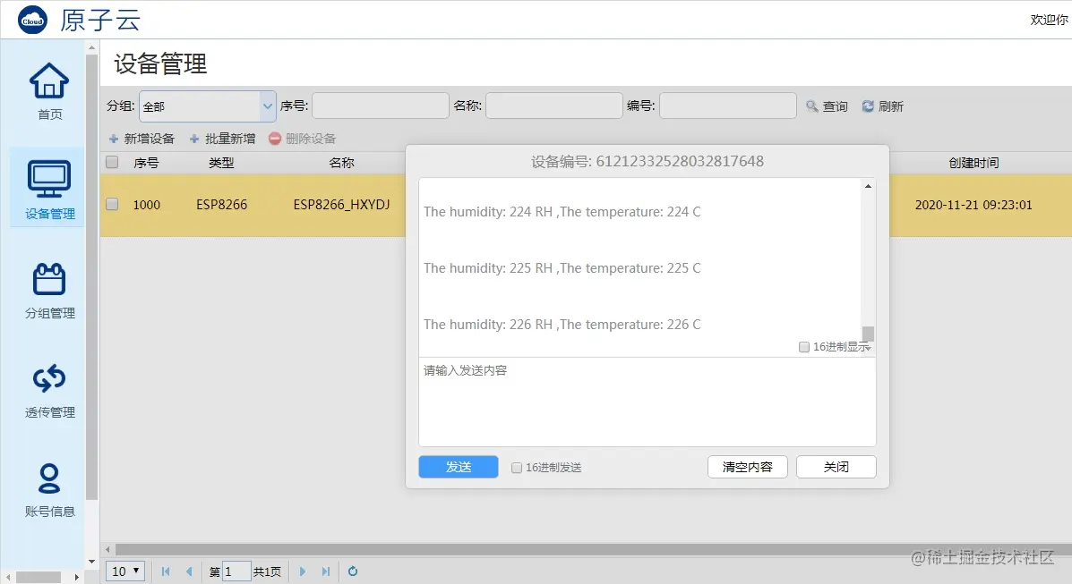 当模块连接到原子云上之后,就可以通过单片机向云端发送数据了。