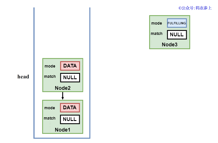 Hydra:好的,那我们先回顾一点上面的知识,前面说过每个节点有一个mode属性代表它的模式,REQUEST表示它是消费者,DATA表示是生产者,FULFILLING表明正处于匹配中的状态。