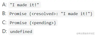 答:C,通过上述方法返回的是一个等待态的Promise。