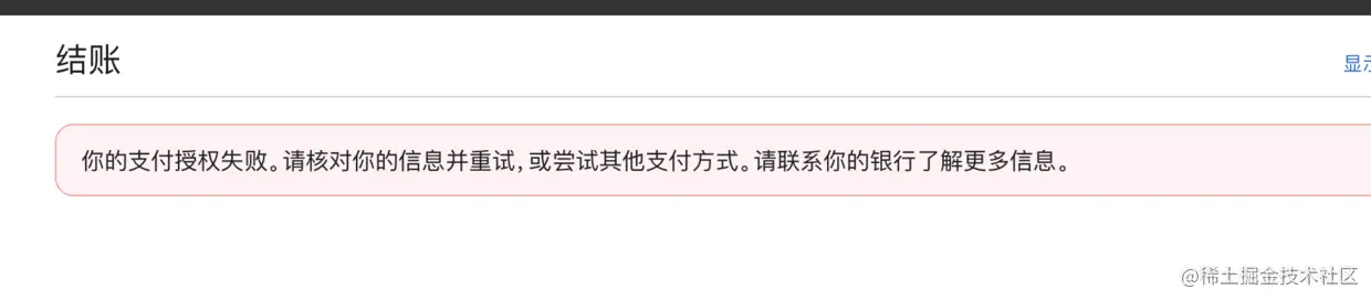 iOS 开发者账号续费虽然流程有点繁琐且只支持信用卡付款,但是每年都能顺利的续费成功,今年续费磕磕绊绊试了很多次都不成功,总是提示“你的支付授权失败。请核对你的信息并重试,或尝试其他支付方式。请联系你的银行了解更多信息。”,如下图:
