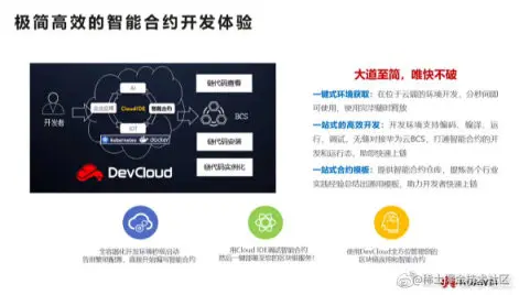 华为云区块链服务更有利于整个体系构建一套区块链服务的开发体验,支持华为云以及混合云边缘云等等多种的不同的云进行部署,开放式访问以及全球的协作网络,实现灵活部署,通过开放式网络把不同的节点构建起一个联盟,在这个联盟网络内,基于区块链自身的能力,业务实现互通,数据共享。