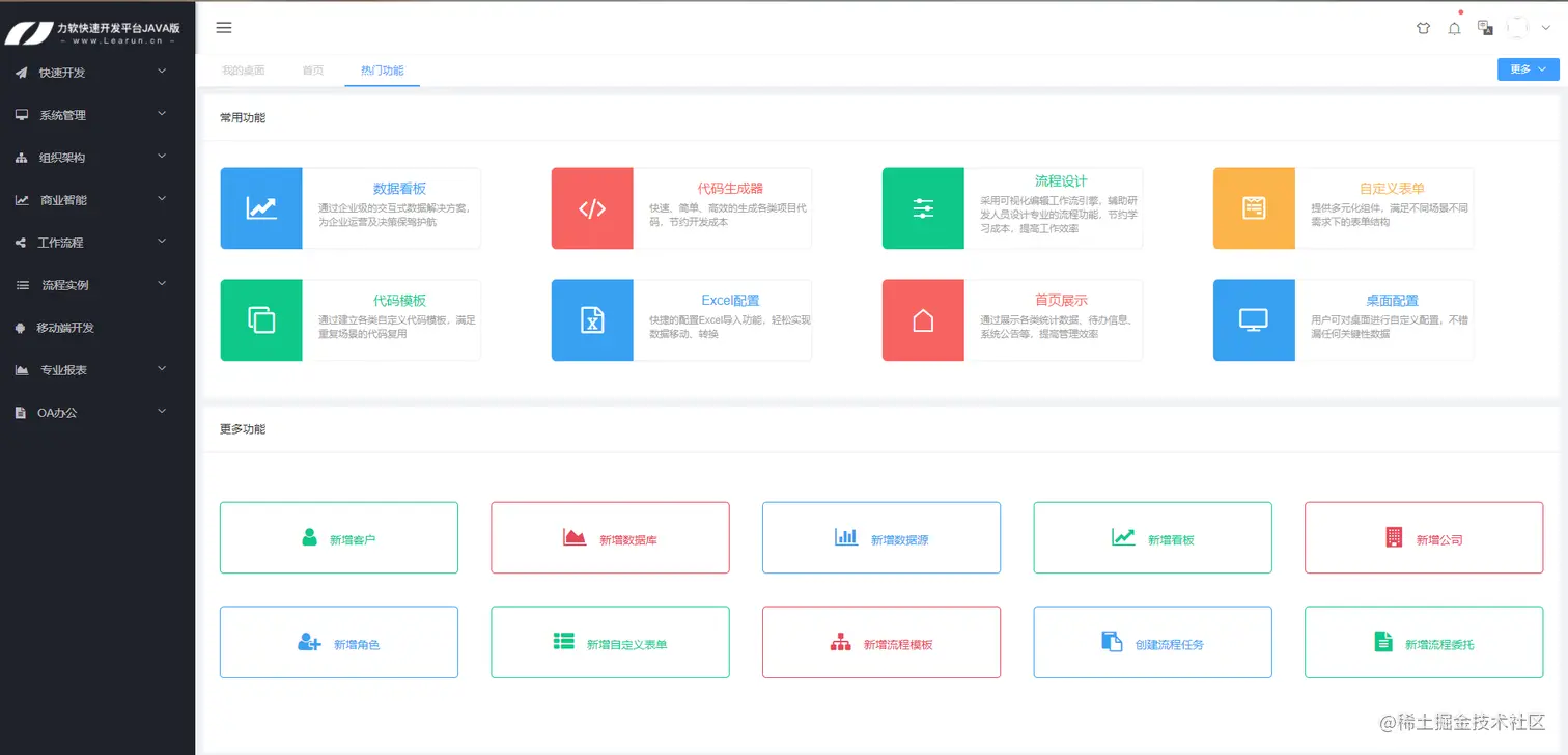 如力软快速开发平台,通过此平台经过简单的业务参数配置和SQL语句即可完成OA、ERP、CRM、BI、移动APP、微信公众号/小程序等众多企业系统的开发工作。