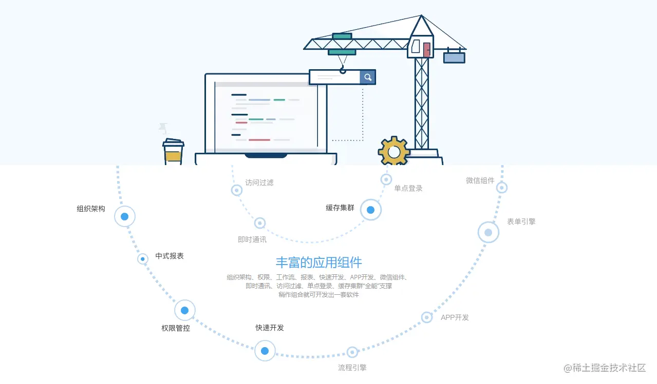 以前,系统的实现受制于复杂的编程,开发一个合格的系统需要投入大量的人力物力,而快速开发平台将重复开发的底层功能代码组件化,开发者在开发中只需要专注于逻辑即可。