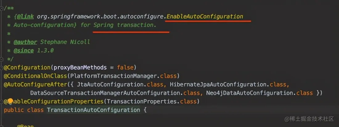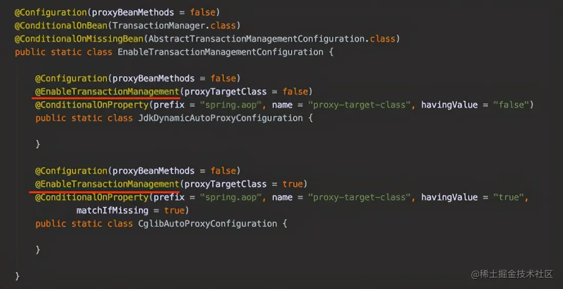 我们知道如果使用的是springboot框架,它自动帮你开启了事务管理。可以从框架源码里面看一下
