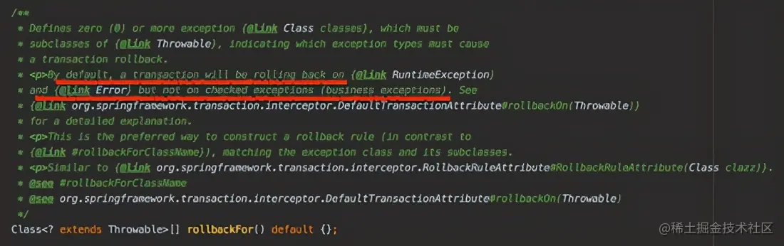 原因十:标注了@Transactional的方法发生的异常不是rollbackFor指定的类型或子类