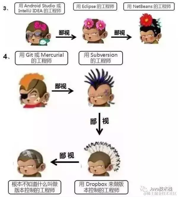 不同时代的程序猿,不同的类型程序猿,不同的公司的程序猿,不同技术栈的程序猿等都有着自己独特的优越感。