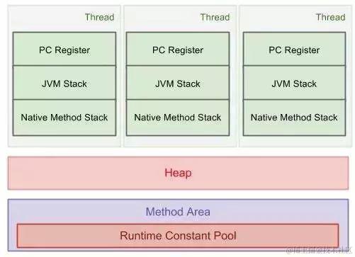 图解展示了整个虚拟机运行时数据区域的情况。