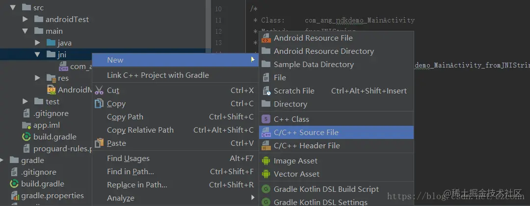 五、在 jni 目录下创建 c 或者 c++ 文件;