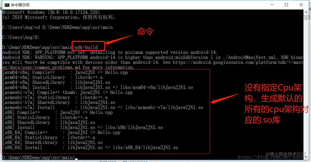 d, 注意:这种手动生成. so 库的方式,使用 ndk17 生成失败,以上都是应用的 ndk16,由于 ndk17 已不在支持 mips、armeabi CPU 架构,