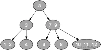元素始终保持排序顺序,整体上保持二叉查找树的性质,即父结点大于左子结点,小于右子结点;而且结点有多个元素时,每个元素必须大于它左边的和它的左子树中元素。