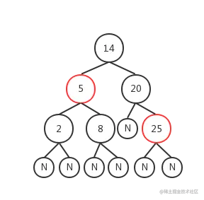 但实现上我省略了其中的 Nil 结点,一般如下图,大家理解时也可以忽略它们。