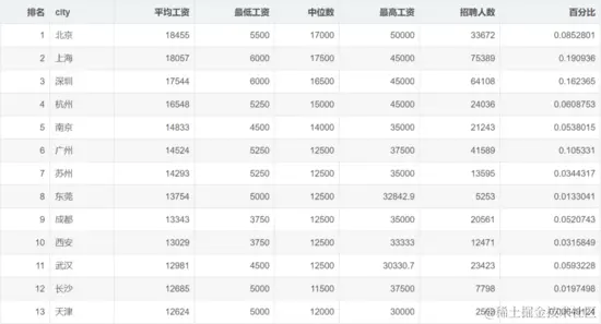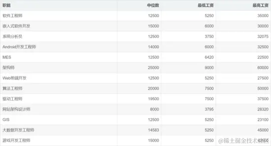 【2】 程序员收入差别大,不同城市不同岗位差别很大,中位数的13000,然而平均薪资到了15052,高薪人群的薪资是真的高,程序员薪资成长空间真大!