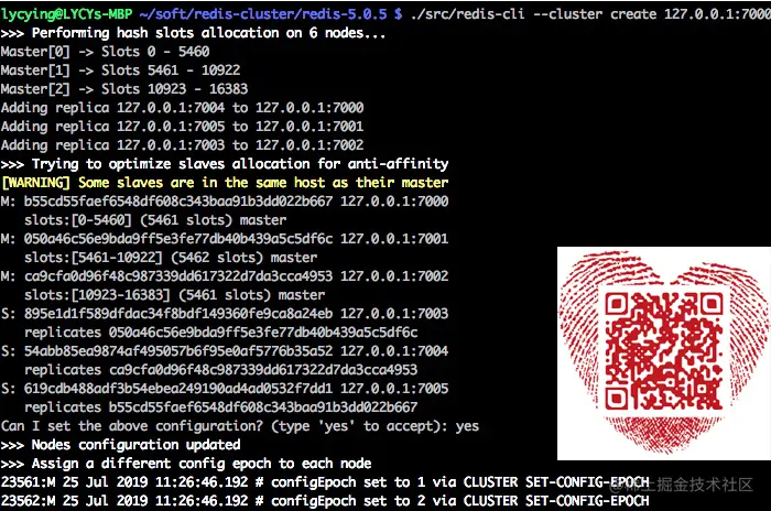 ./redis-cli --cluster create 127.0.0.1:7000 127.0.0.1:7001 127.0.0.1:7002 127.0.0.1:7003 127.0.0.1:7004 127.0.0.1:7005 --cluster-replicas 1