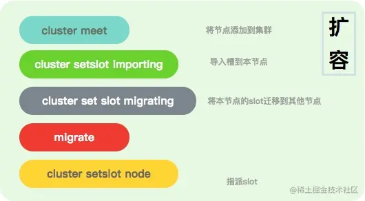 运维的入口有两个。 一个是使用redis-cli连接任意一台,然后发送cluster打头的命令,这部分命令大多数是对槽进行操作。 在开始组合集群时,就是反复调用这些命令进行的具体逻辑执行。