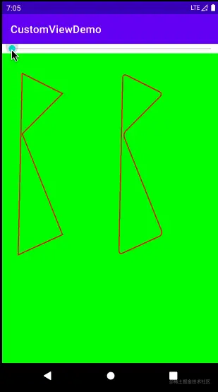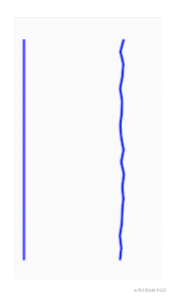 效果动图展示 如下图中的两个路径,本身两者的路径是相同的,但是我们通过滑动Seekbar后动态改变第二个路径Paint的pathEffect属性,然后第二个路径就逐渐变得圆润了