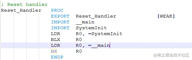 通过上面的两个图可以看到,通过复位向量的重映射后,MSP指针就会跳转到复位向量处,在STM32系列单片机中,复位向量的函数通常在启动文件startup_stm32f10x_xx.s中实现。
