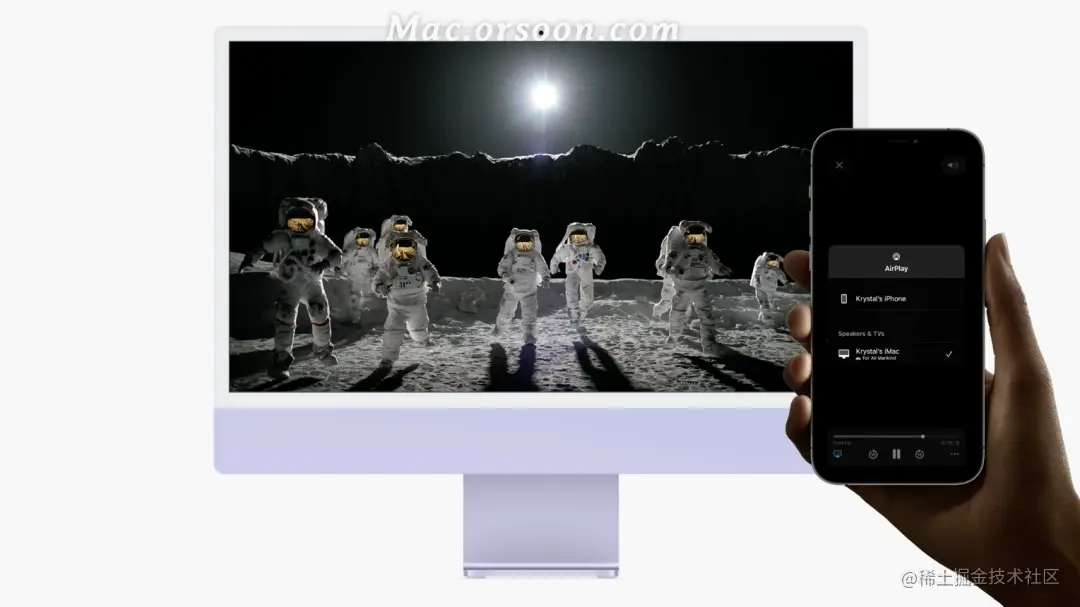 可将其他设备(iPhone、iPad、Mac)上的视频、音乐、Keynote 等内容,直接隔空播放到 Mac 上。在之前,这可是要通过数据线或者第三方软件才能实现的操作。