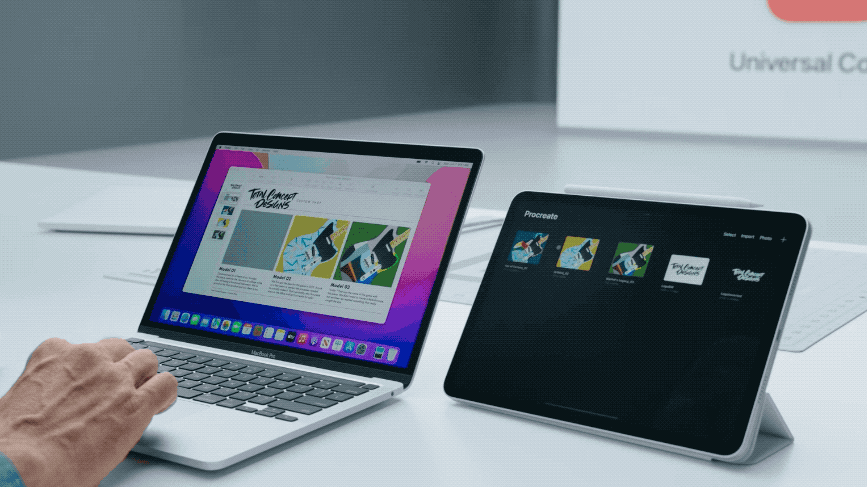 macOS 12 新增「通用控制」功能,使得跨设备协同操作便捷度更进一步。用同一套键鼠、触控板,即可控制 Mac 和 iPad ,让鼠标指针在 Mac 和 iPad 之间无缝切换,iMac 和 Mac 之间也可以。甚至支持跨设备拖拽文件。 最多可在三台设备间配合使用。