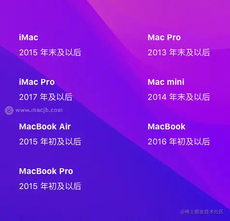 macOS 12 支持的机型