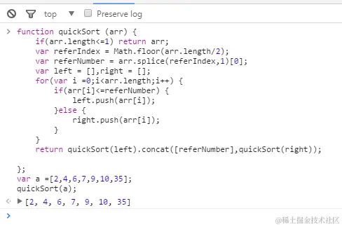 6.然后,分下来的数组就是两个数组,然后递归,使用这个方法,在把这些数组再分,最后就是一个个数组,顺序大小排列好的数组