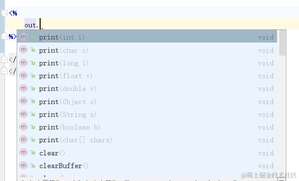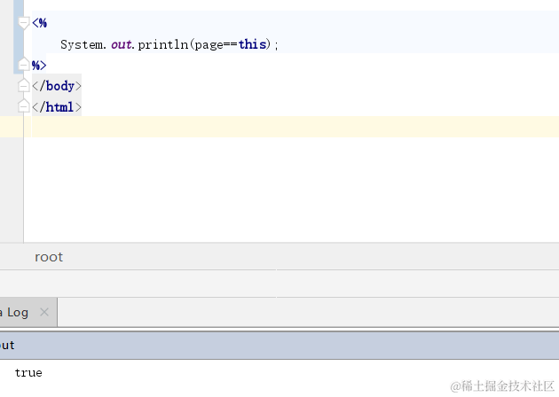 1 out: servlet中有 response.getWriter().print();方法向页面输入内容,jsp中用out来输出.完整的jsp页面转换成html其实就是用来out.write()方法将数据和html标签全部变成字符串输出到客户端