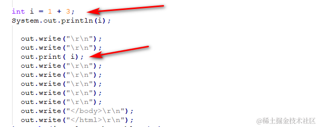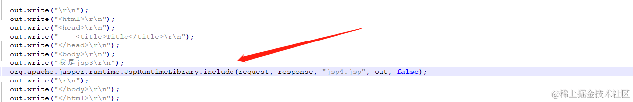 下面来看jsp翻译成java的代码(只截取和以上有关系的)