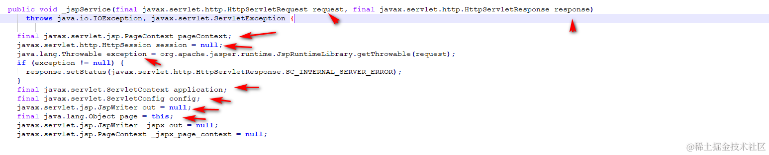 其中那个眼熟的_jspService就是处理请求的方法.