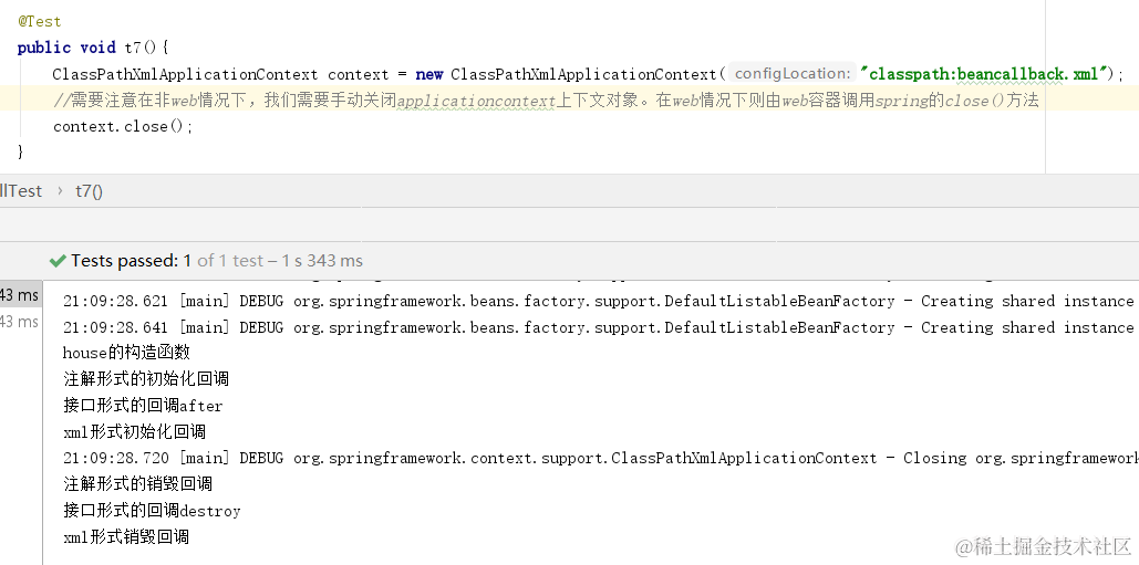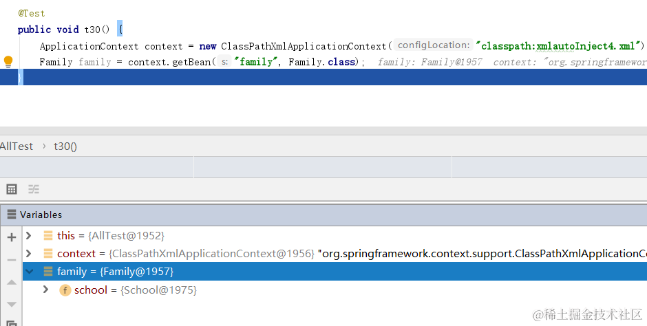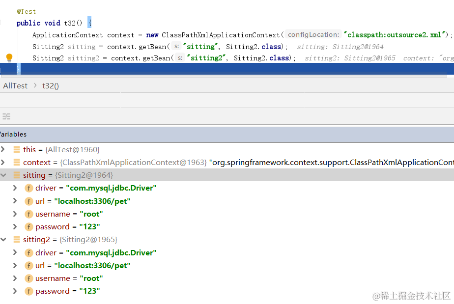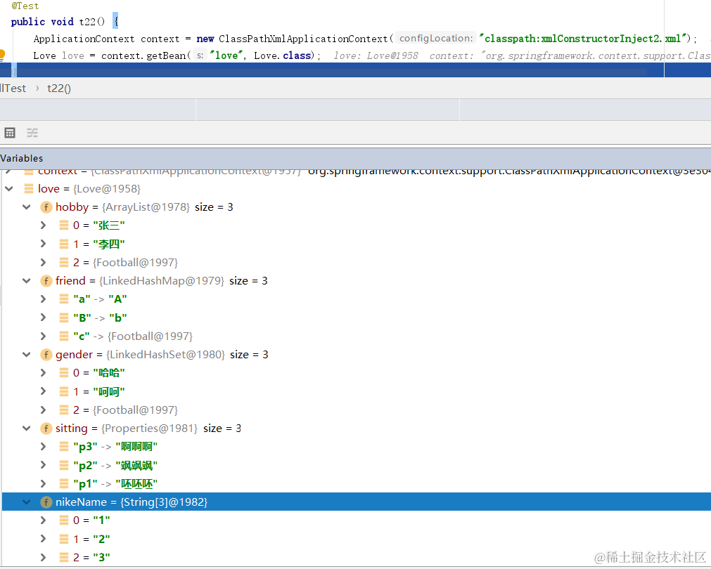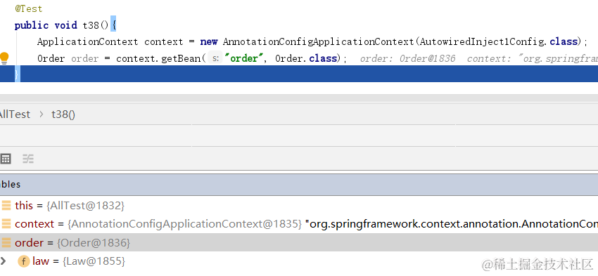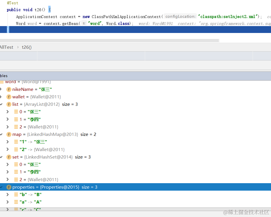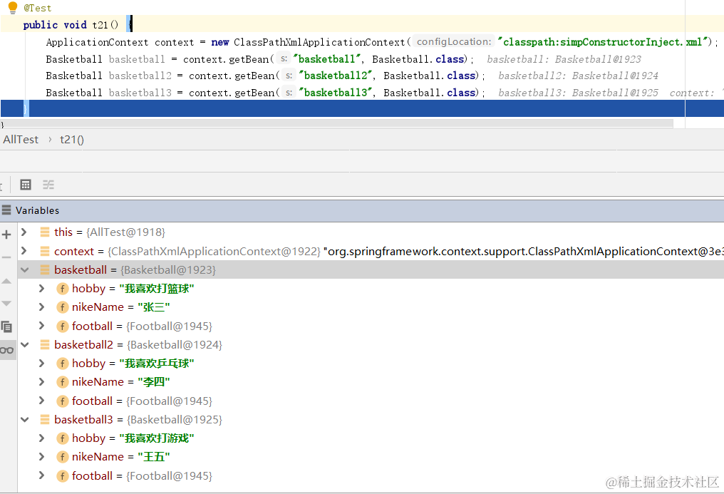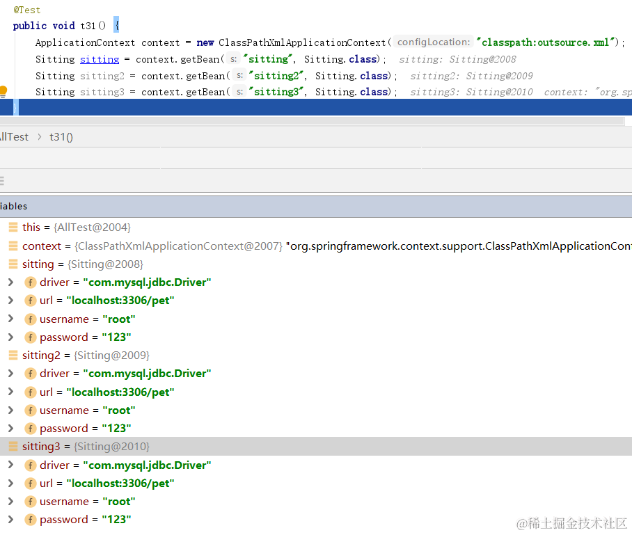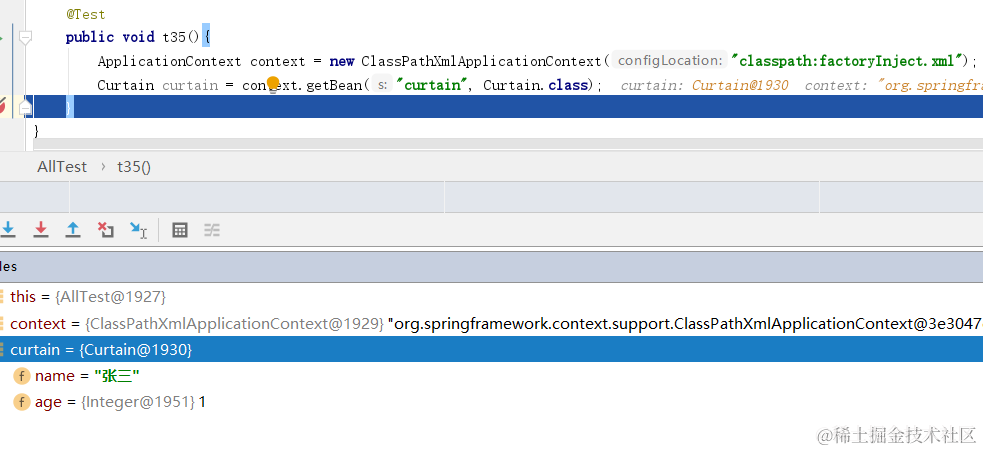 无论哪种方式实例化bean,被实例化到map中的bean都有一个唯一的名称。我们通过这个名称来找到bean,如getBean(),包括在注入属性时,我们也需要使用到bean的名称来找到bean。以上test中使用xml实例化bean时,我们使用id属性来指定bean的名称,不设置id也有默认的名称。而使用java方式和注解方式时,我们则没有指定bean的名称。为了演示方便我们将xml中实例化bean的id属性去掉。