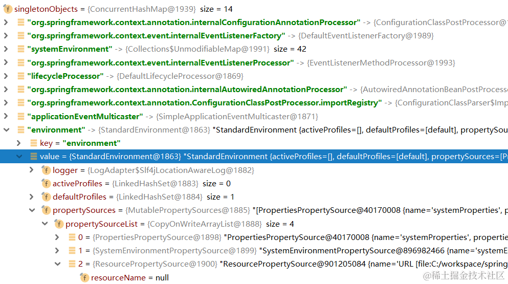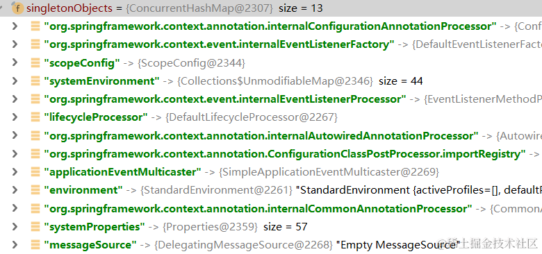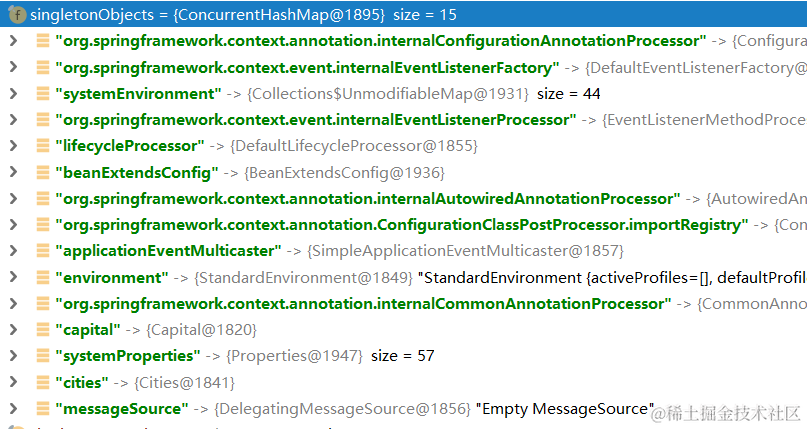存放所有单例模式的bean。关于bean的模式后边内容会说到。